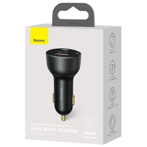 Автомобільна зарядка Baseus Supreme Digital Display 100W QC 4.0+PD3.0 PPS USB + Type-C 5A4784