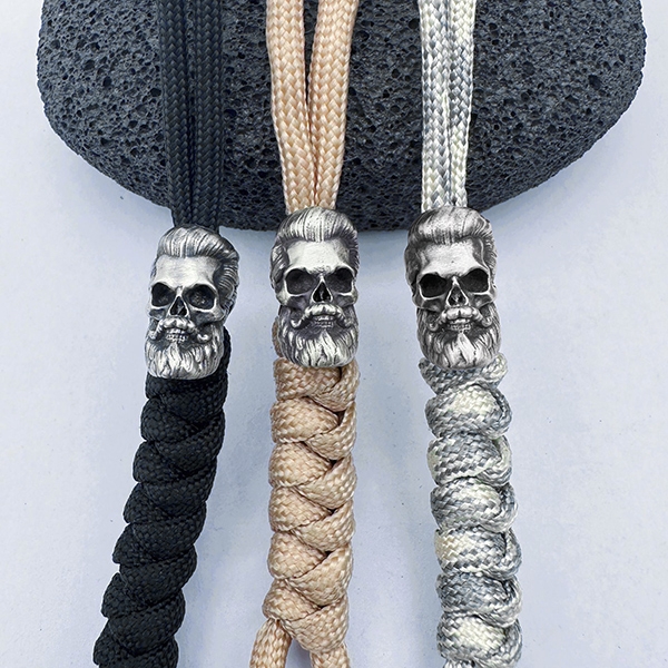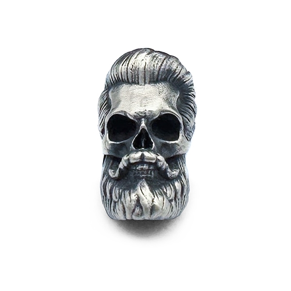 Намистина у вигляді черепа зі стильною зачіскою та пишними вусами і бородою.
