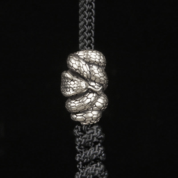 Стилізована під змію, що обвиває темляк, ця намистина виготовлена із литого металу.