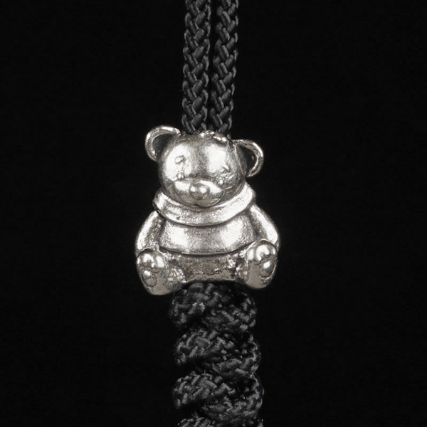 Лита металева намистина з наскрізним отвором для паракорду, виготовлена у формі іграшкового плюшевого ведмедика.