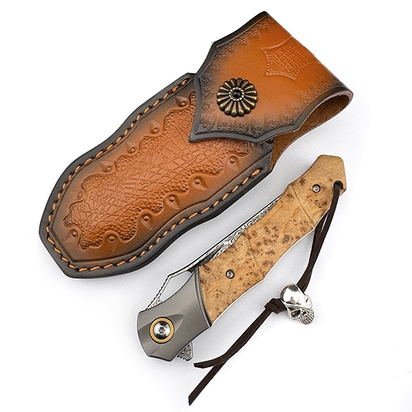 Прямий та витончений складаний ніж з дерев’яним руків’ям, сталевими больстерами та клинком із ламінованої сталі. Плавний рух клинка забезпечується підшипниками, а його фіксація – замком Liner Lock.