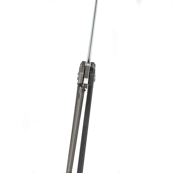 Лезвие в открытом положении упирается в упорную бонку которая с одной стороны заходит в металлический лайнер, а с другой входит в карбон или срытый внутри плашки небольшой металлический лайнер?