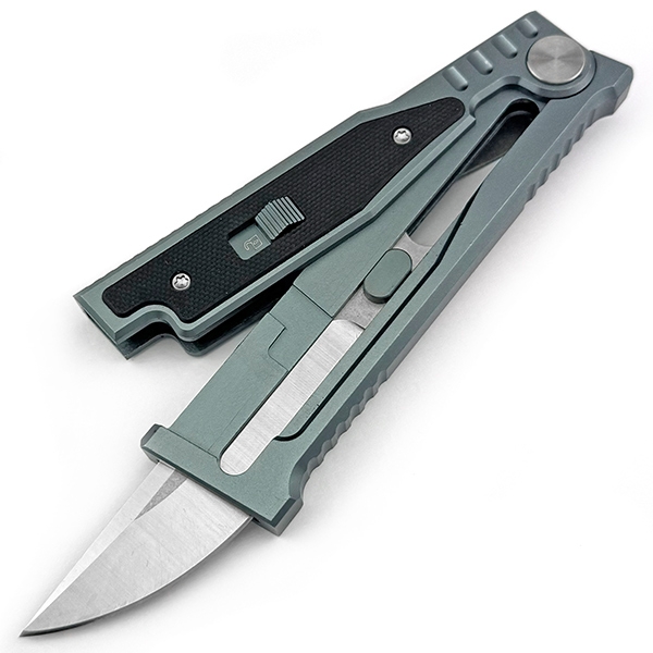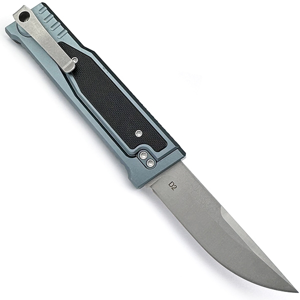 Здавалося б – чергова фронталка. Але є нюанс. Жодних пружин у цьому ножі немає, а для відкривання потрібна лише сила гравітації. Новинка від Reate Knives під назвою EXO-M демонструє новітній механізм ножа з фронтальним викидом клинка. Такої механіки вдалося досягти поділом руків’я на дві рухомі частини, з’єднані осьовим гвинтом – для відкриття вони розводяться в сторони, а при закриванні (та фіксації) зводяться у робоче положення та фіксуються повзунком замка. Китайці постаралися максимально відтворити конструкцію і у них непогано вийшло. Ніж позбувся титанових елементів руків’я і замість них отримав алюмінієві. В якості накладок на руків’я використали композит G10. Клинок зі сталі D2 виконано у профілі Drop Point. Ніж має не лише високий колекційний потенціал, але і практичне значення – окрім традиційних завдань по різу він може слугувати своєрідним «спінером» для задумливих медитацій. Залиште замовлення на сайті, щоб купити репліку гравітаційного ножа Reate EXO-M Gravity.