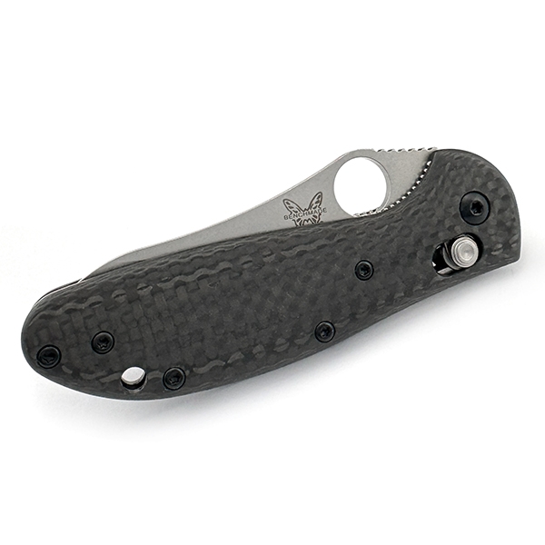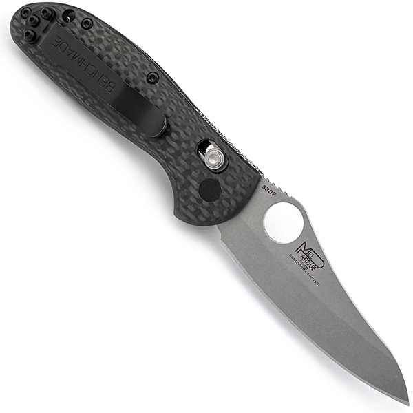 «Молодший брат» легендарного Гріптіліана, компактний EDC з приставкою Mini створений для того, щоб бути поряд. Компактні розміри, зручне відкривання одним пальцем, неагресивна форма руків’я – дизайнер Мел Пардью створив хіт, що увійшов в історію. Репліка успадкувала розміри та профіль оригіналу, а накладки на руків’я отримала з карбонового волокна, при чому двох тонів – чорного та сріблясто-сірого. Сталеві пластини під накладками надійно армують конструкцію та слугують підпальцевим упором (для цього на їх торцях є спеціальна насічка). Клинок рухається на підшипниках, тож з відкриванням проблем не буде, а універсальний замок Axis Lock дозволить користуватися ножем без втрати зручності як правшам, так і лівшам. Залиште заявку на сайті або зателефонуйте нам, щоб купити репліку ножа Benchmade Mini Griptilian 555 Carbon Fiber.