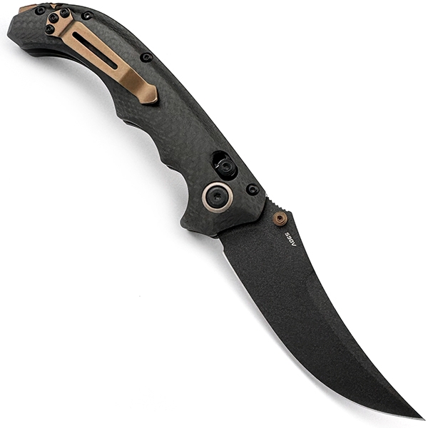Ще одна версія репліки красивого ножа від Бенчмейд – моделі Mini Berdlam, що завоювала популярність своїм витонченим профілем та відмінними ріжучими характеристиками. Увага до деталей тішить око – починаючи від сталевого бекспейсера, що також є склобоєм і додатковим упором для долоні (з відповідними насічками) і закінчуючи упізнаваним клинком у вигнутому профілі Trailing Point. Карбонові накладки на руків’я, посилене перфорованими сталевими пластинами, матовий cerakote фініш клинка, мідного кольору вставки на осьовий, шпеник, кліпса та спейсер – ніж відчувається повноцінним та довершеним інструментом, що не потребує покращень. Двостороння кліпса дає можливість змінити конфігурацію ножа під праву або ліву руку, ідеально віддзеркаливши ніж буквально за кілька рухів викруткою. Оформіть замовлення на сайті, щоб купити репліку ножа Benchmade Mini Bedlam Carbon Fiber.