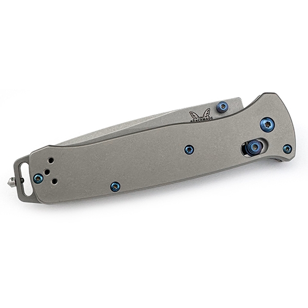Уже друга підряд титанова репліка одного із хітів компанії Бенчмейд, тактичного фолдера Bailout, цього разу – з гладким руків’ям без патернів та узорів. Ніж виготовлено за всіма канонами механічної естетики – титанові накладки з вибірками зсередини для зменшення ваги, посилюючі сталеві пластини у ділянці осьового і замка, металеві шайби у осьовому вузлі, зручний двосторонній замок Axis lock, двостороння кліпса, різучий клинок з тонким обухом. Це довершений, компактний інструмент для будь-який підручних завдань, достатньо міцний та достатньо легкий (всього 107 грам), щоб не нагадувати про свою присутність у кишені при кожному русі. Зателефонуйте нам, щоб придбати репліку ножа Benchmade Bailout Titanium.