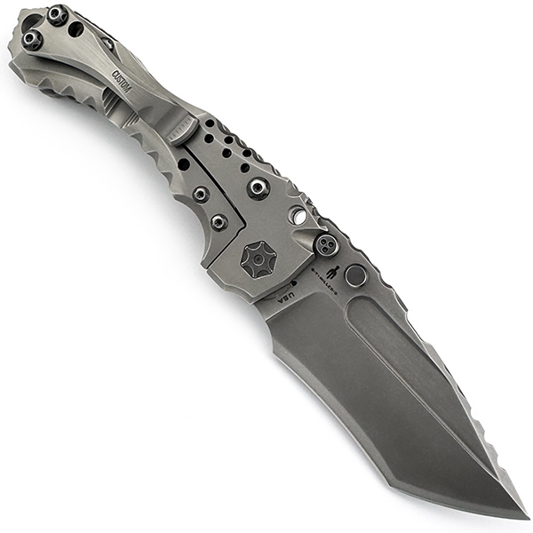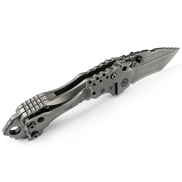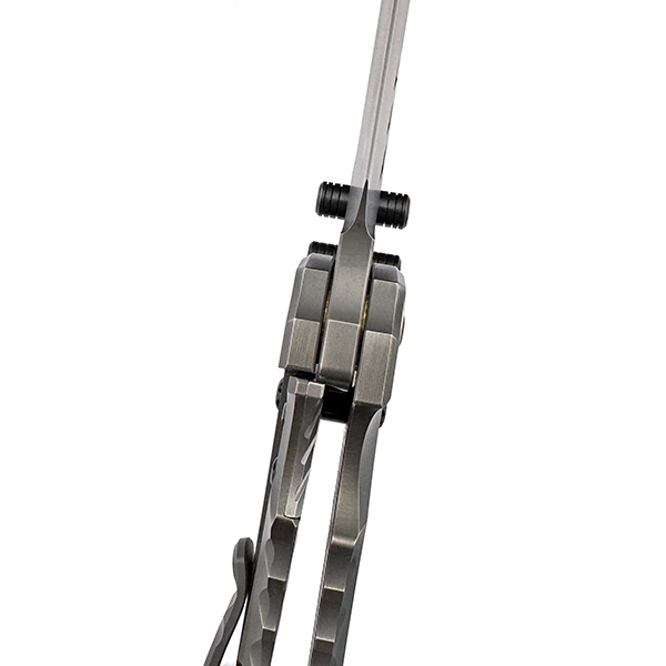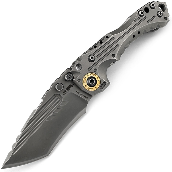 Брутальний T1 вже давно став візитівкою американської компанії Miller Bros та прикрашає численними своїми варіаціями з 4-значними цінниками магазини по всьому світу. Це масивний, габаритний фолдер з великою кількістю деталей – шпеники, виступи, гравіювання, доли та виїмки. Справжня ікона стилю для тих, хто цінує красиві речі. Над ножем дійсно добре попрацювали і результат відповідний – назвати це просто «копією» язик не повертається – клинок з з преміум сталі Z-Wear, титанове руків’я, титанова кліпса, латунна вставка під осьовий, два шпеники (кожен зі своїм узором), сталевий сухар на фреймі, наскрізний отвір під пін-фіксатор (в комплекті) для ще більш надійної фіксації клинка. Ніж відчувається і виглядає так, що готовий працювати хоч проти тиранозавра – верхньої планки просто не існує. Залиште замовлення на сайті, щоб купити репліку ножа Miller Bros Blades T1 Performance Edition.