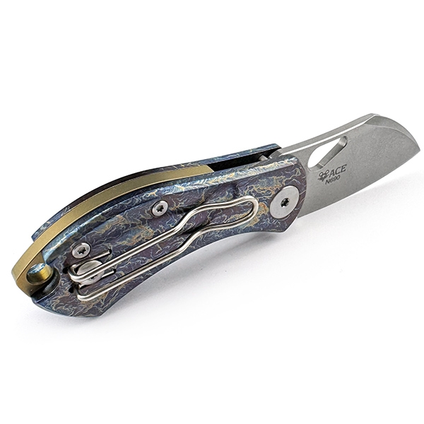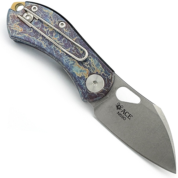 Один із найменших на сьогоднішній день представників серії Disarray з титановим полірованими накладками руків’я – репліка кишенькового Ace Nibbler від Giantmouse. Це компактний фолдер з коротким wharncliffe клинком та міцним руків’ям з товстим бекспейсером. Фіксацію клинка забезпечує сталевий лайнер, а вищезгаданий спейсер служить додатково і кріпленням для темляка. Скористайтеся швидким оформленням замовлення на сайті, щоб придбати репліку ножа GiantMouse ACE Nibbler Disarray.