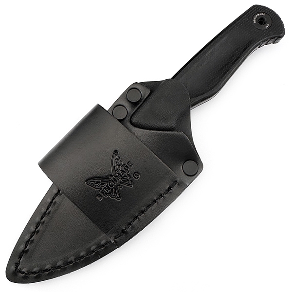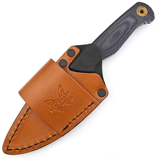 Нова варіація симпатичного фікседа від Бенчмейд, моделі Dacian. Від попередньої відрізняється наявністю full-black кольору та комбінованими піхвами з кайдексу та шкіри. Матеріали ножа залишилися незмінними – накладки з мікарти, клинок 9Cr18MoV. Шкіряні піхви мають зручне кріплення на поясний ремінь з розміщенням ножа паралельно до землі.
