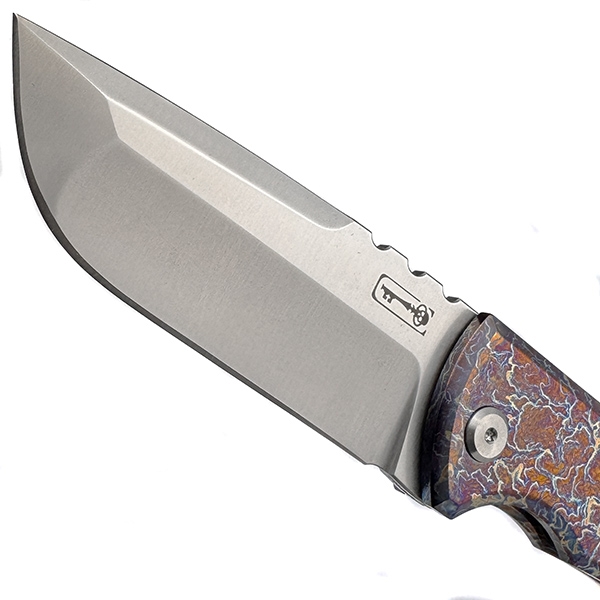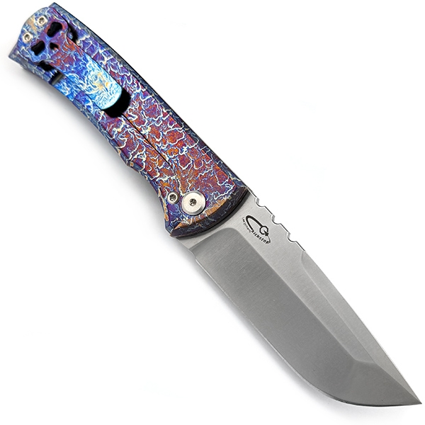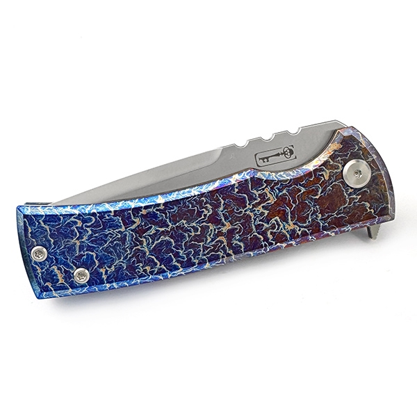 Один із найпопулярніших ножжів Рамона Чавеса, модель Redencion - тепер і в серії Disarray з полірованим титановим руків'ям. Як і попередня репліка базового ножа, ця не обділена увагою до деталей - це і дві кліпси у комплекті (звичайна та з черепом), і модифікований плавник, що ховається у руків'я в розкладеному стані, і високий фрейм зі сталевим сухарем. Це середнього розміру міцний та красивий ніж не лише для особистої колекції, але і для практичного використання.
