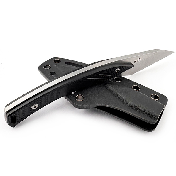 Тему традиційного японського ножа кірідаші у сучасному світі використовують все частіше і ця спроба належить італійському гіганту тактичних ножів – компанії Екстрема Раціо. Репліка має одну суттєву відмінність – накладки руків’я тут виготовлені з композиту G10, а не з алюмінію. У більшості випадків це доволі-таки тверезе рішення, якщо взяти до уваги, яким ковзким може бути алюміній, чого не скажеш про чіпку і шершаву композитну поверхню. Кірі – це невеликий фултанг фіксед з товстим обухом та асиметричними спусками – максимальне дотримання традицій вимагає стамесочної заточки. Традиційно ніж комплектується піхвами із кайдексу з можливістю кріплення додаткових кліпс або шнурка. Скористайтеся кнопкою швидкого замовлення, щоб купити репліку ножа Extrema Ratio Kiri G10.