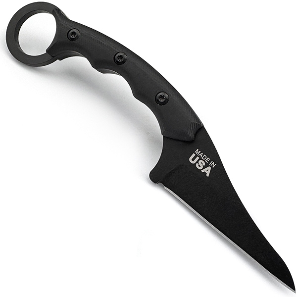 Poker - це невеликий і навіть витончений фултанг фіксед від компанії TOPS, легко упізнаваний завдяки керамбітному кільцю. Попри свої скромні розміри, ніж доволі легко лягає в руку завдяки вигнутій формі руків'я та глибокому чойлу, що виконує роль упору для короткого клинка у практичному профілі Wharncliffe. Репліка отримала накладки з G10 (в оригіналі мікарта) та зручні горизонтальні фіхви з кайдексу з ккріпленням на пояс. Залиште замовлення на сайті, щоб купити репліку ножа TOPS Knives Poker.
