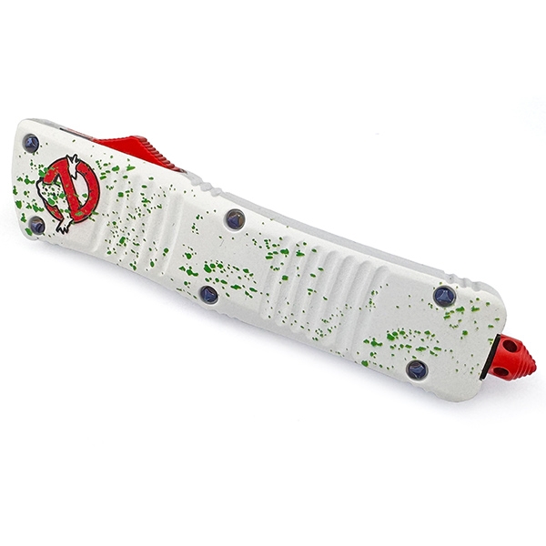Нова серія Ghost Busters від Майкротек демонструє відсилку до легендарних «Мисливців за привидами» з біло-червоною палітрою. Дана репліка отримала руків’я з цинкового сплаву, клинок зі сталі 440C та традиційний для моделі механізм подвійної дії. Клинок та руків’я вкриті яскраво-зеленими вкрапленнями, що символізують «кров» монстрів. В оригіналі ці «бризки» пофарбовані флуоресцентною фарбою, репліка ж такої честі не удостоїлася. Залиште замовлення на сайті, щоб купити ніж Microtech Combat Troodon Ghost Busters.