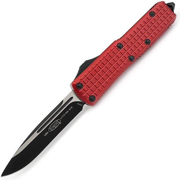 Репліка компактного UTX-85 (що буквально означає 85% розміру від моделі Ultratech), ножа з фронтальним викидом клинка та алюмінієвим червоним руків’ям з «гранатним» патерном. Ніж з класичним механізмом двосторонньої дії легко поміщається у кишені та позиціонується EDC варіантом для щоденного користування. З додаткових зручностей – двостороння кліпса та склобій.