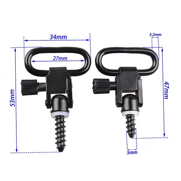 Набор антабок из пяти элементов с возможностью монтажа как на деревянныую ложу, так и на полимерную. Содержит три антабки (две разной длины для вкручивания в дерево, одну для монтажа на пластик) для ложи и две быстросъемные антабки под ремень к ним. Дополнительно комплектуются крепежными гайками и полимерными проставками для монтажа. Подойдут как для крепления оружейных ремней, так и установки сошек.