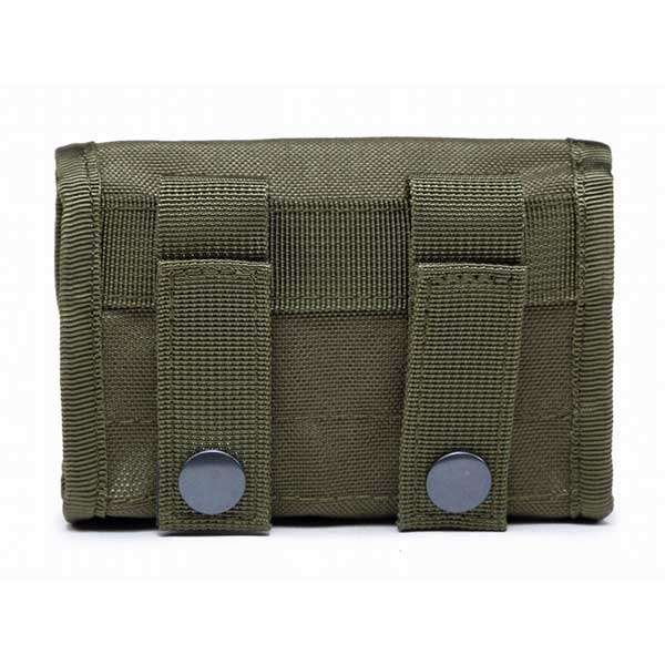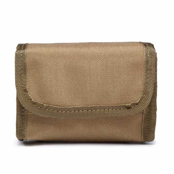 Нейлоновый подсумок на 10 охотничьих патронов в 12 калибре. Имеет компактные габариты, а патроны дополнительно прикрываются карманом на липучке. На задней стенке подсумка вшиты две стропы, совместимые с системой крепления Molle, также легко можно прикрепить его на обычный пояс шириной до 5.5 см. Каждый патрон размещается в отдельной ячейке из прорезиненного эластичного материала.