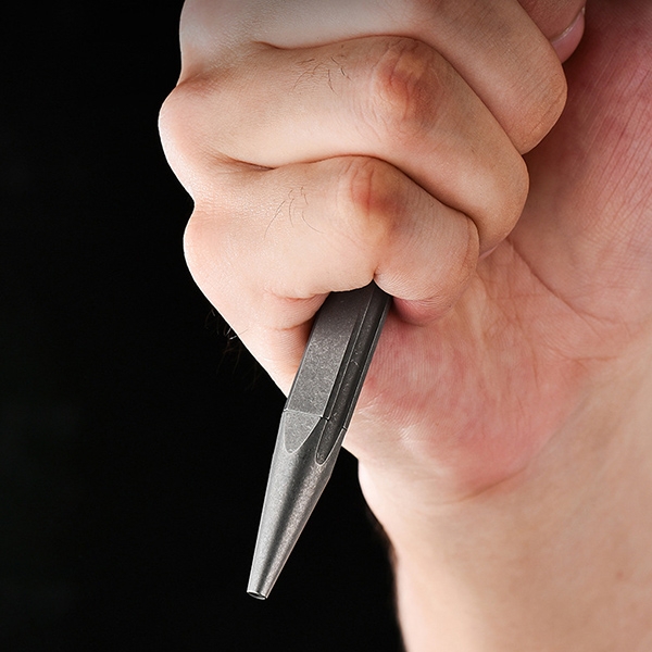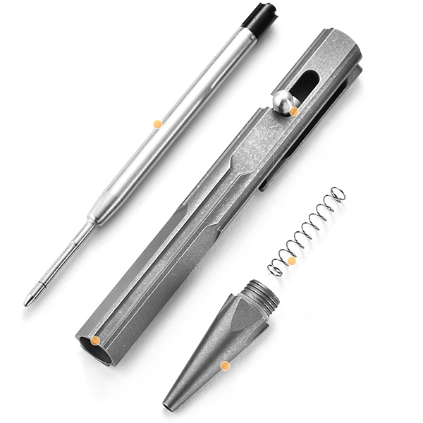 Тактична ручка від Two Sun у легкому та надзвичайно міцному корпусі з титанового сплаву. Випуск стержня здійснюється одним пальцем миттєво за допомогою простого механізму, а знімна кліпса дозволить посадити ручку на борт кишені.
